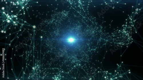 Wall mural abstract space background, geometry surfaces, lines and points. abstract tunnel grid. can be used as
