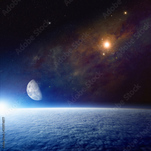 The watermark will not be included on Wall mural.: Abstract space background with earth, moon and supernova