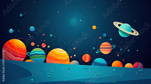 The watermark will not be included on Wall mural.: Abstract space background with planets and solar system from colored paper - generative ai