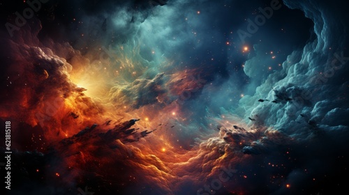 Wall mural : Abstract space background with stars and nebula, computer-generated image - illustration of fractal w