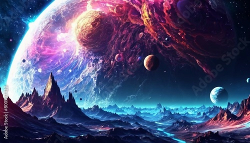 Wall mural : Abstract space exploration background with cosmic landscapes and sci-fi elements -