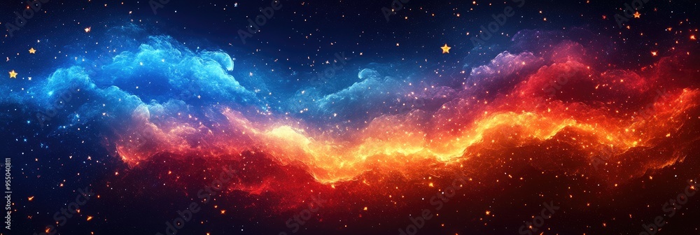 Wall mural : Abstract space nebula with fire and ice swirls and stars