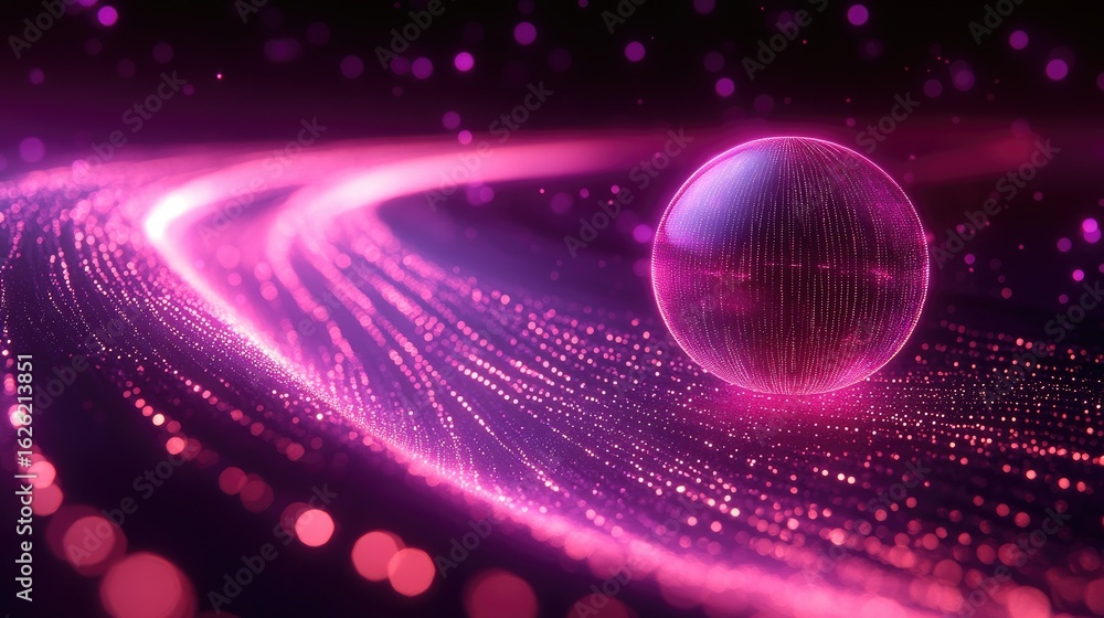 The watermark will not be included on Wall mural.: Abstract sphere with glowing particle stream background