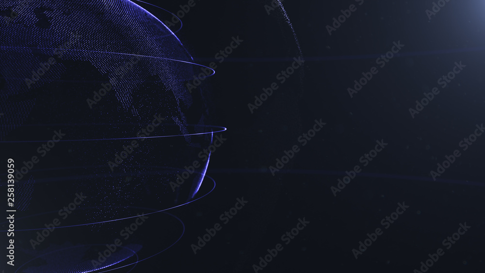 Wall mural abstract sphere. crop photo. connected navy blue dots with lines. globalization interface. planet is