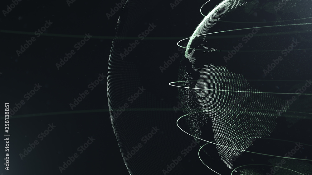 Wall mural abstract sphere. crop photo. connected white dots with lines. globalization interface. planet is sit