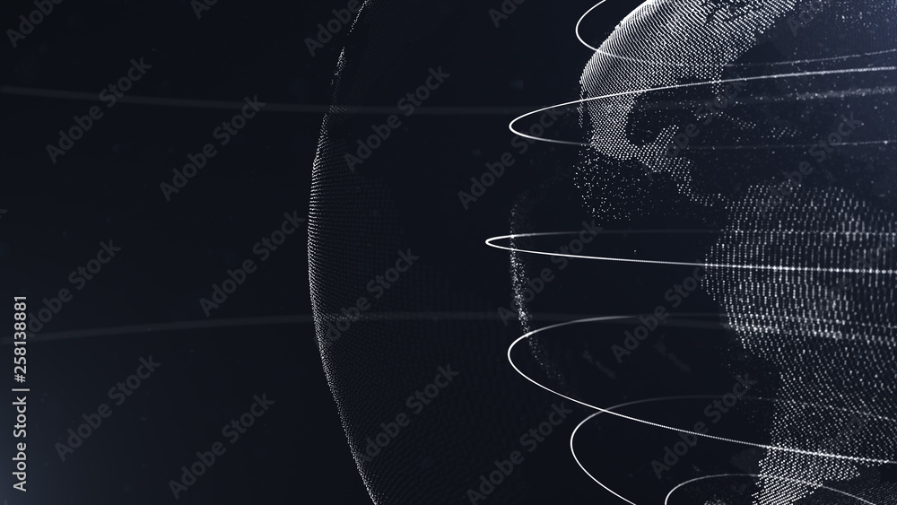 Wall mural abstract sphere. crop photo. connected white dots with lines. globalization interface. planet is sit