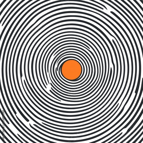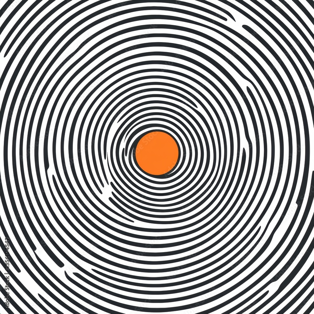 The watermark will not be included on Wall mural.: Abstract spiral pattern with bold centering orange circle on a black and white background highlighti
