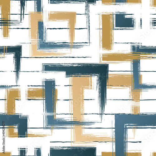 Wall mural abstract square seamless pattern. repeating gold grunge backdrop. random squares. background golden