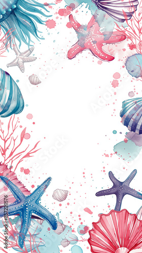 Wall mural : Abstract starfish and shell frame with copy space and dynamic sea elements in vibrant colors