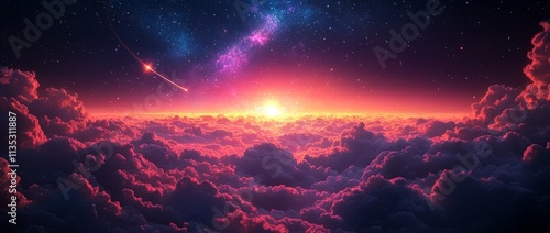 Wall mural abstract starlight with pink and purple clouds, accented with stardust, for presentations and websit