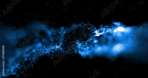Wall mural : Abstract stream array colorful glitter sparkle blue lines with particles on black background science