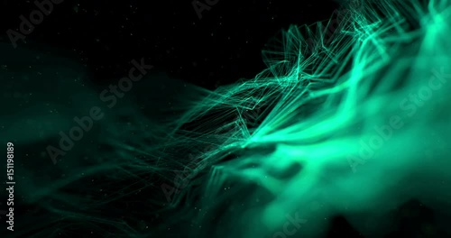 The watermark will not be included on Wall mural.: Abstract stream wave array colorful glitter sparkle green lines with particles on black background t