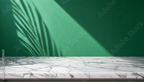 Wall mural abstract studio with green background for product presentation. empty room with window shadows, flow