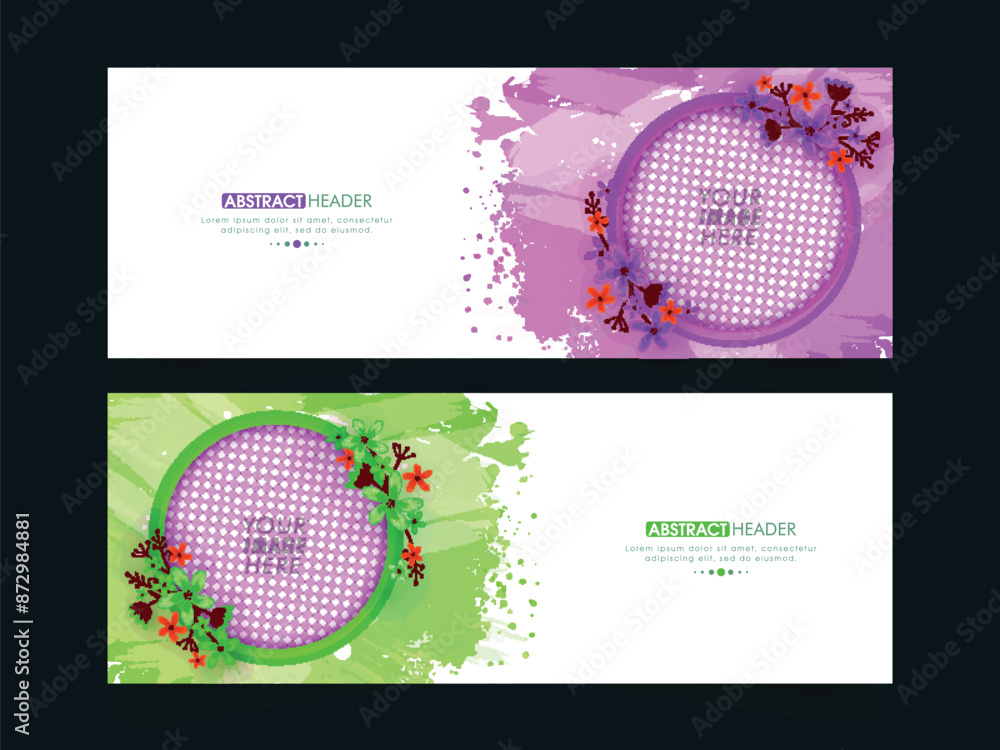 The watermark will not be included on Wall mural.: Abstract style website banner or header design set with blank floral frame for advertising -
