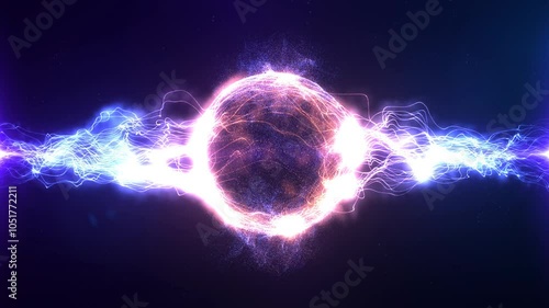 Wall mural abstract surreal blue energy particle animation, colorful motion graphic background, 4k loop
