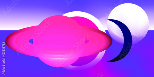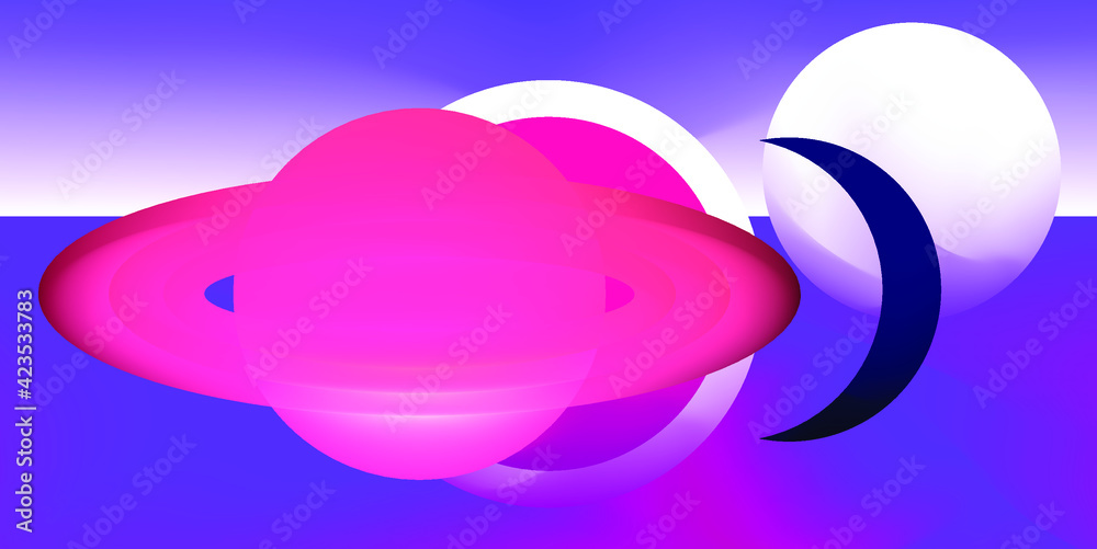The watermark will not be included on Wall mural.: Abstract surrealistic background with space bodies and planets in geometric composition -