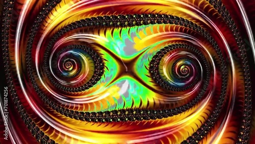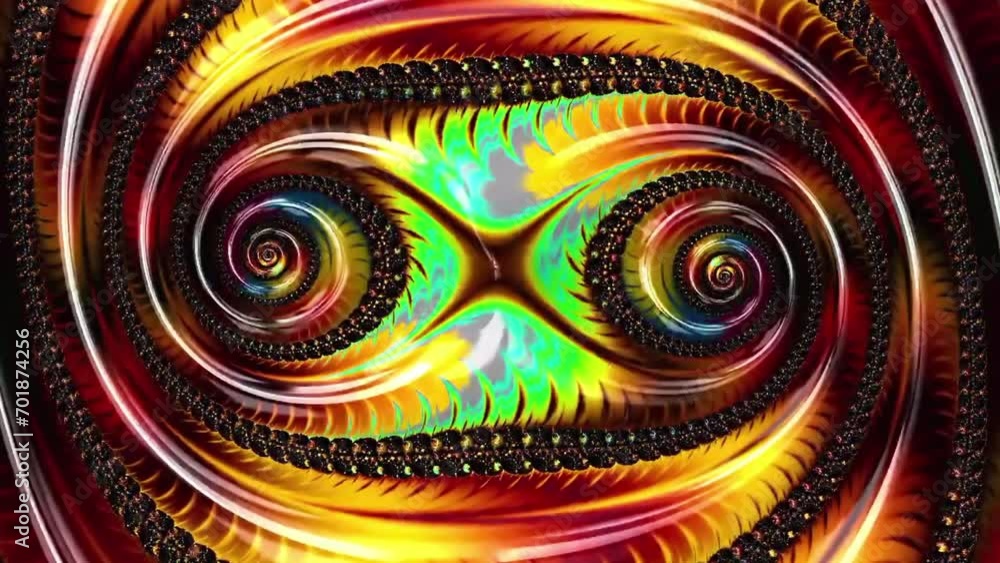 The watermark will not be included on Wall mural.: Abstract swirl colorful fractal rotating on black background - loop able backdrop animation