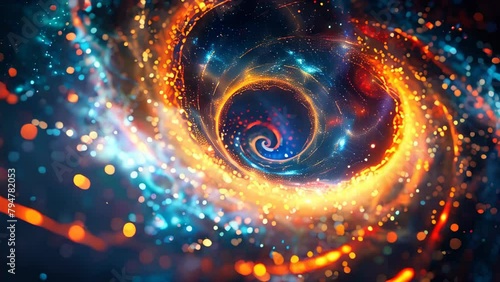 Wall mural abstract swirl of glowing neon light particles on a dark background