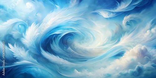 Wall mural abstract swirl of white and blue clouds forming a vortex in the sky