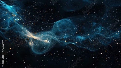 Wall mural abstract swirling blue and orange nebula with stars in deep space generative ai