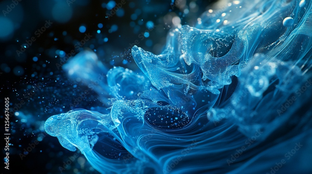 The watermark will not be included on Wall mural.: Abstract swirling blue liquid with dark background and bokeh -