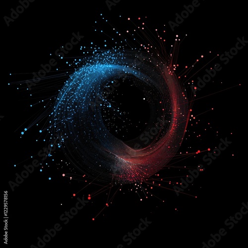 Wall mural abstract swirling data visualization red and blue interconnected nodes and lines on black background