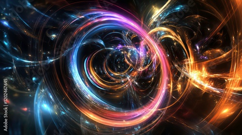 Wall mural : Abstract swirling light trails and glowing energy vortex in dark space -