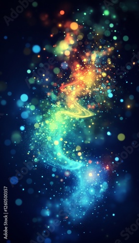 The watermark will not be included on Wall mural.: Abstract swirling light wave on black background with glowing bokeh particle effects, digital art -