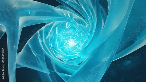 The watermark will not be included on Wall mural.: Abstract swirling light: a mesmerizing swirl of luminous, translucent turquoise forms converge on a