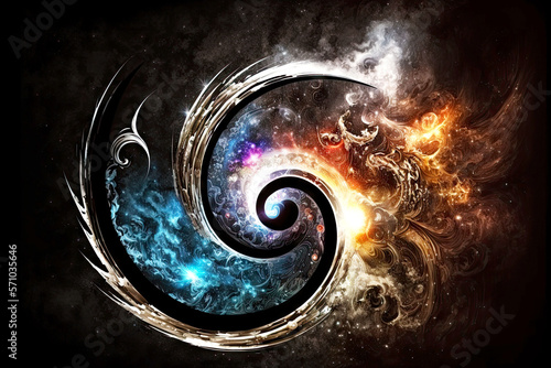 The watermark will not be included on Wall mural.: Abstract symbol representing cosmic energy of the universe and bright space galaxies, generative ai