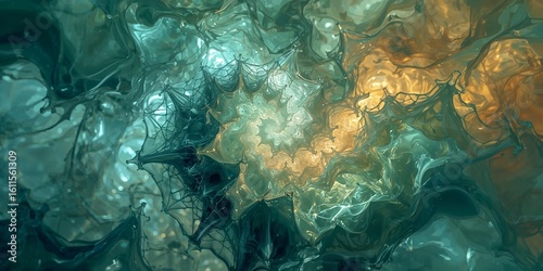 Wall mural abstract teal and gold fractal pattern with swirling designs and intricate web like formations visib - Wall murals Wall mural abstract teal and gold fractal pattern with swirling designs and intricate web like formations visib - Wall murals