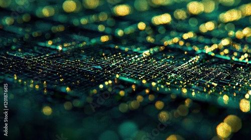 Wall mural : Abstract teal and gold grid texture with bokeh background