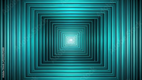 The watermark will not be included on Wall mural.: Abstract teal geometric tunnel of infinite squares and lines