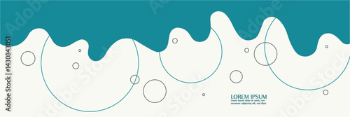Wall mural : Abstract teal wave with circles on white background for modern design -