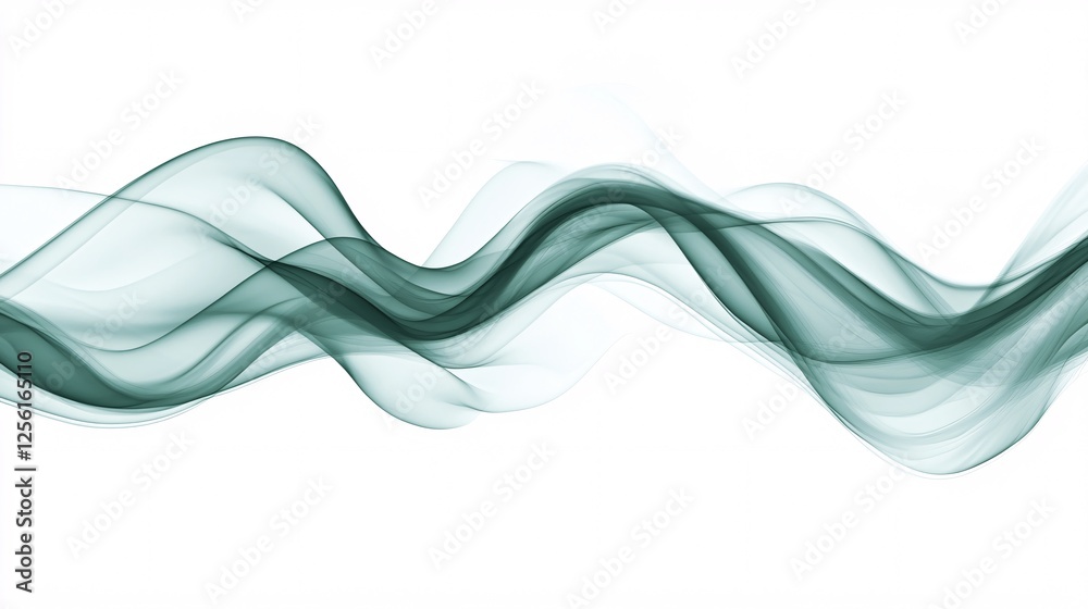 The watermark will not be included on Wall mural.: Abstract teal waves gracefully flow across a white background, creating a soothing visual effect -