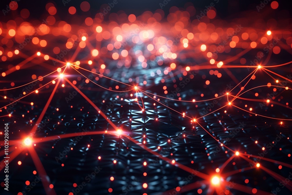 Wall mural abstract tech background featuring illuminated fiber optic connections, showcasing a quantum computi - Wall murals Wall mural abstract tech background featuring illuminated fiber optic connections, showcasing a quantum computi - Wall murals
