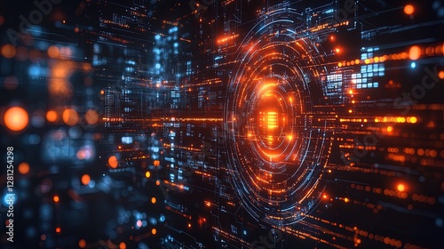 The watermark will not be included on Wall mural.: Abstract tech background with digital circuits, glowing data patterns, and futuristic symbols