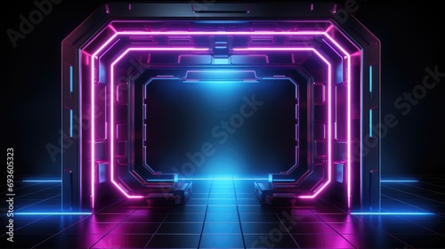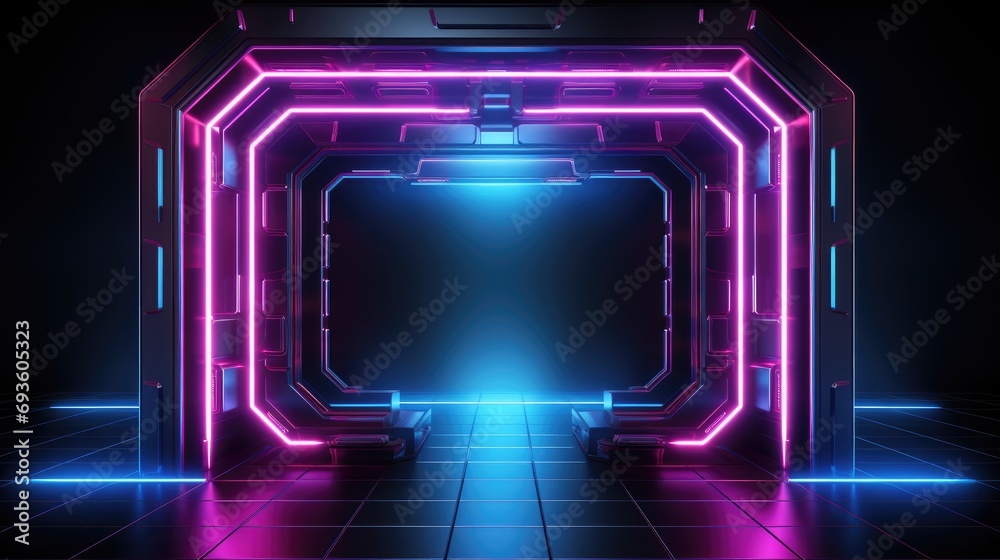 The watermark will not be included on Wall mural.: Abstract tech futuristic ui spaceship window display, hud digital game border panel - -