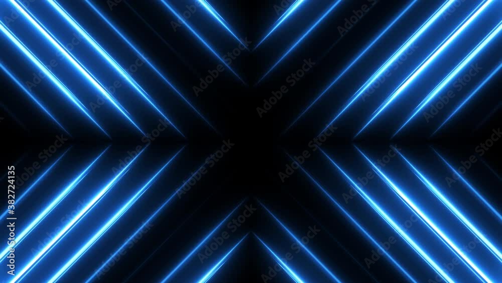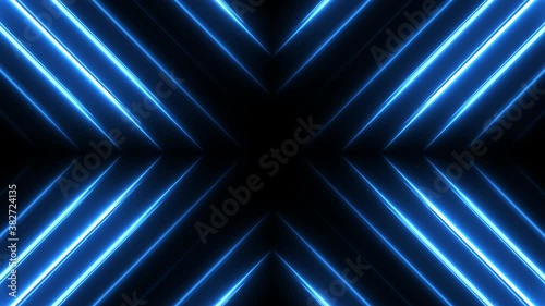 Wall mural abstract techno background with blue neon lights. striped texture in cross shape for innovation conc