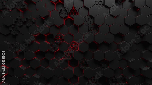 Abstract technological background made of black hexagons with red glow - seamless loopWall mural