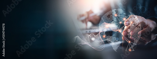 Wall mural abstract technology background, internet global network connection, digital transformation concept.  - Wall murals Wall mural abstract technology background, internet global network connection, digital transformation concept. - Wall murals