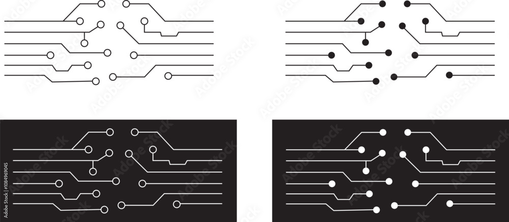 Wall mural abstract technology background circuit board pattern icons set isolated transparent. ai chip electro