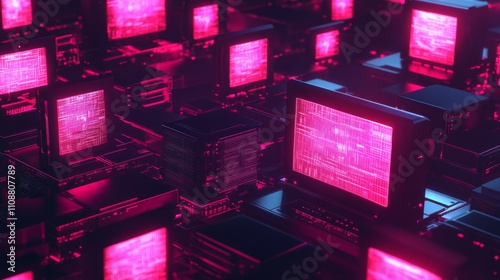 The watermark will not be included on Wall mural.: Abstract technology background featuring a graphic representation of multiple computers connected ov