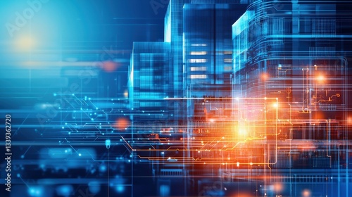 Wall mural abstract technology background of digital data and network connections