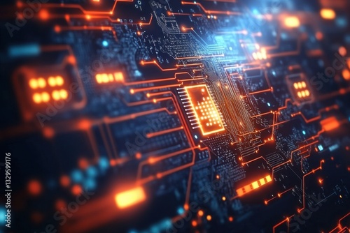 Wall mural : Abstract technology background showcases a computer circuit board interwoven with intricate web desi