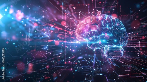 Wall mural : Abstract technology background with circuit board and human brain - artificial intelligence concept
