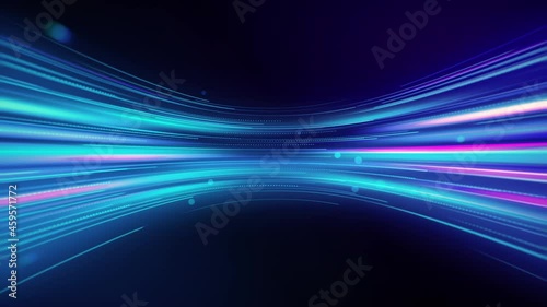 Wall mural abstract technology background with colorful light rays motion. blur gradient texture with shiny str