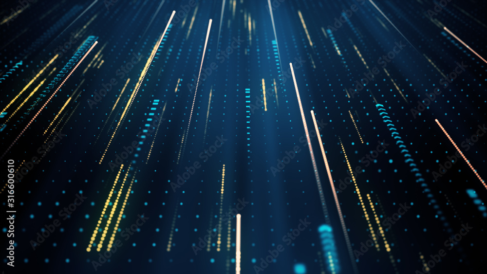 The watermark will not be included on Wall mural.: Abstract technology background with digital particles motion - sci-fi futuristic texture with light t