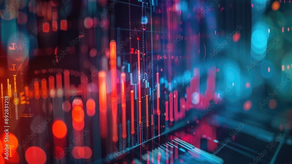 The watermark will not be included on Wall mural.: Abstract technology background with glowing blue and red lines on dark backdrop