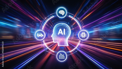 Wall mural : Abstract technology background with glowing circles and digital data connection for business network